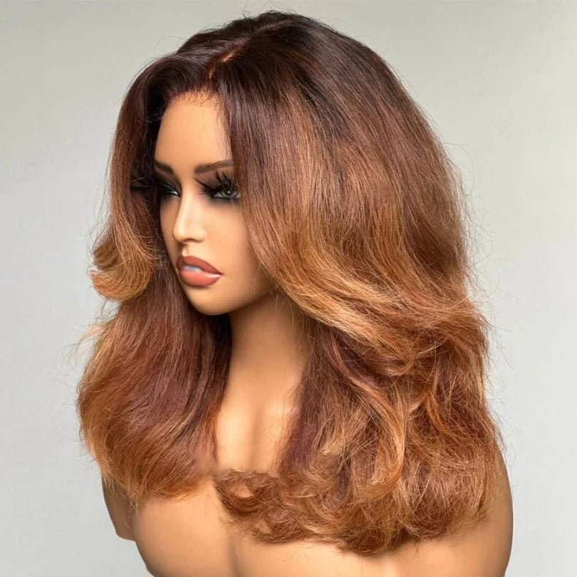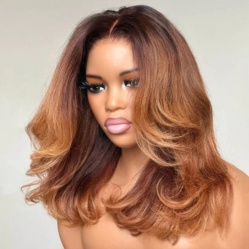 Natural Look Ombre Brown Layered Mid-part Lace Wig