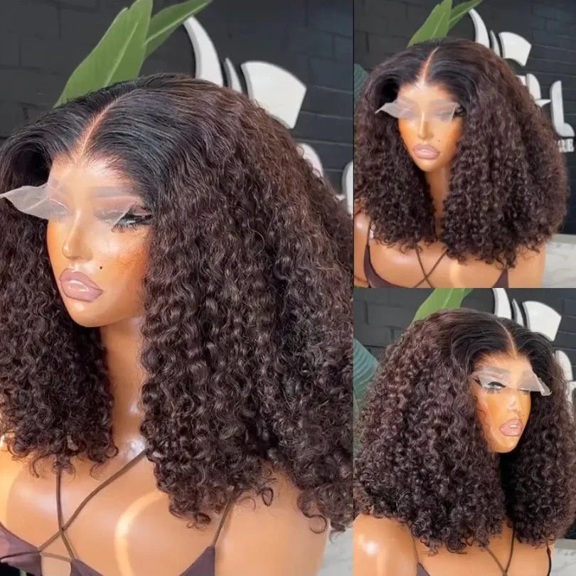 Ombre Brown Mid-part Lace Front Curly Human Hair Wig